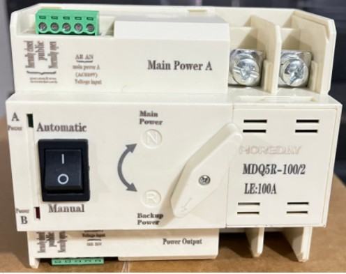 ATS automatski transfer prekidač, koristi se za automatsko prebacivanje rezervnog napajanja na priključeni objekt (kuća, vikendica, vile, apartmani...). Npr. u slučaju nestanka struje u mreži, ovaj uređaj će automatski prebaciti napajanje kuće na rezervni izvor, kao što su agregat, baterijski pretvarač, UPS...