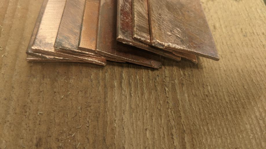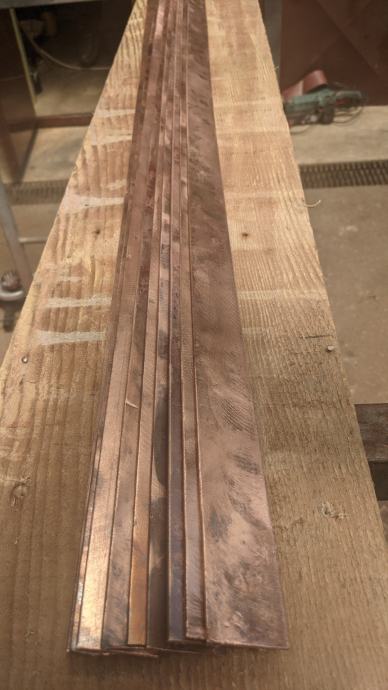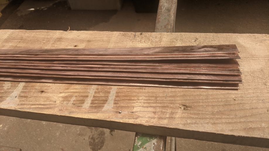 BAKRENE TRAKE DULJINE1200MM X 30MM X 2MM ,26 komada.POGODNE ZA SPAJANJE SOLARNIH AKUMULATORA 6,5 E KOM.
