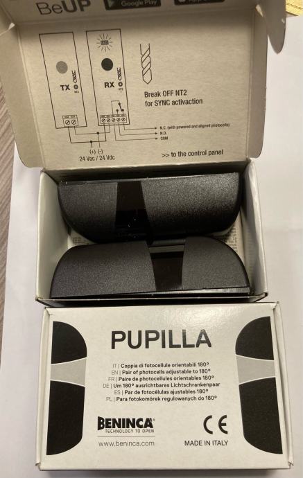 Prodajem nove zapakirane Beninca Pupila fotoćelije. Fotoćelija od 24Vac / dc s rotacijom od 180 stupnjeva. Fotoćelije s rotacijskim lećama od 180 stupnjeva. PUPILLA je fotoćelija dokazana kao pouzdana i svestrana sa svojim rotacijskim lećama od 180 stupnjeva. Par fotoćelija sinkroniziranih za površinsku montažu od 24Vac / dc s rotacijskim snopom od 180 °. Moguće je sinkronizirati do 4 par fotoćelija. 4