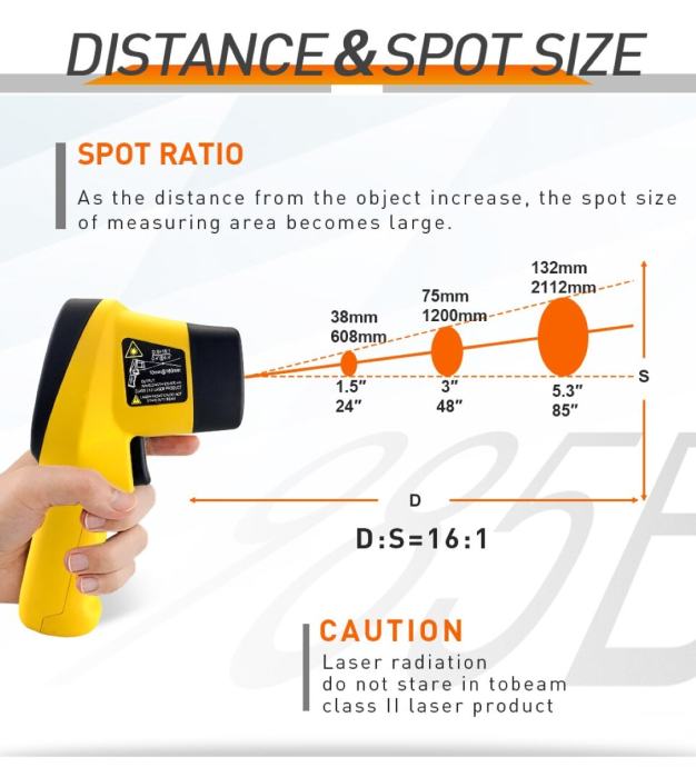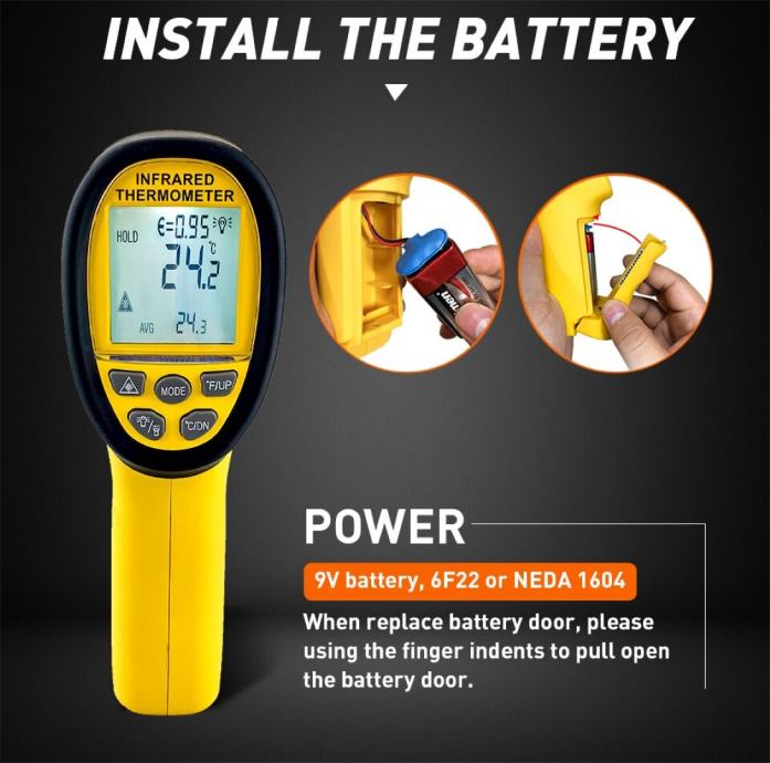 Primjena: mjerenje temperature vrućih toplovodnih cijevi, dijelova motora, površina za kuhanje, hrane i pića, električnih i elektroničkih komponenti itd.