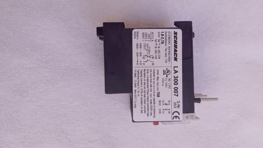 Termorelejna zaštita, područje podešenja 1,8A - 2,7A
