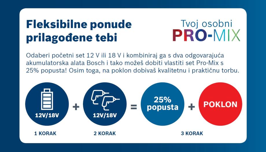 1. korak: Odaberite jedan od ponuđenih početnih setova akumulatora (18V ili 12V) u PRO MIX kampanji.