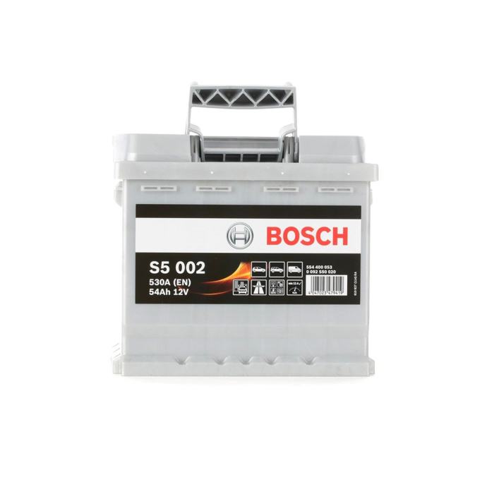 BOSCH akumulator S5 12V 54Ah +D 530A. Bosch akumulatori pokreću vozila u svim vrstama vremenskih uvjeta. Njihova inovativna tehnologija ih čini otpornima na visoke temperature. U isto vrijeme, potrošnja vode i mogućnost korozije svedene se na minimum. To znači minimalno samo-pražnjenje, ekstremnu toleranciju za vožnju na kratkim relacijama i pouzdanost tijekom radnog vijeka baterije.