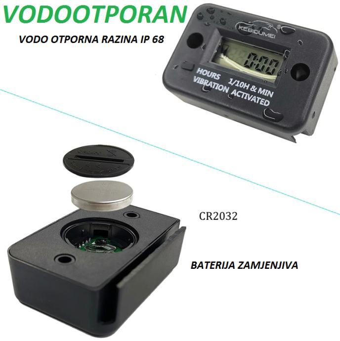 BROJAČ RADNIH SATI VIBRACIJSKI VODO OTPORAN NIJE POTREBNO NAPAJANJE