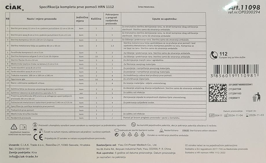 Vrijedi do 01.01.2030. godine. 1× prvi zavoj 12 cm x 5 m, s jednim jastučićem 12 × 16 cm