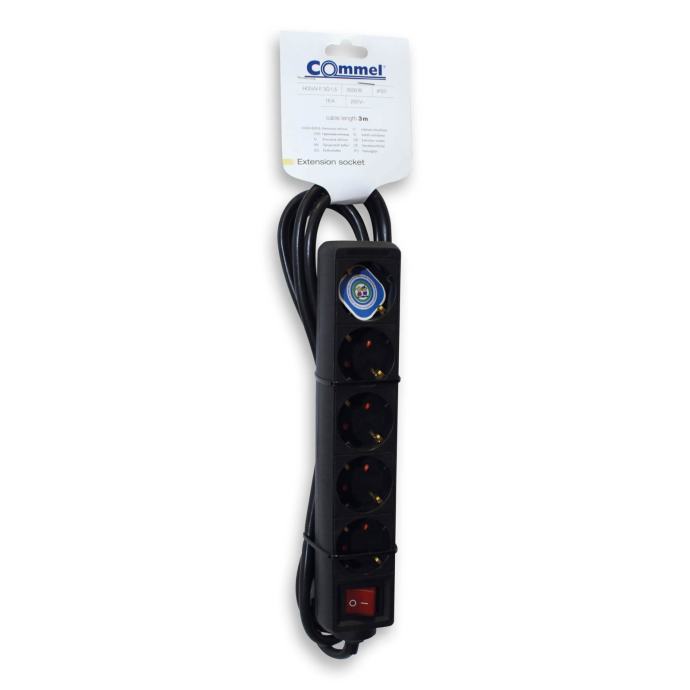 COMMEL produžni kabel 3m 5x utičnica 16A sklopka crni 232-525