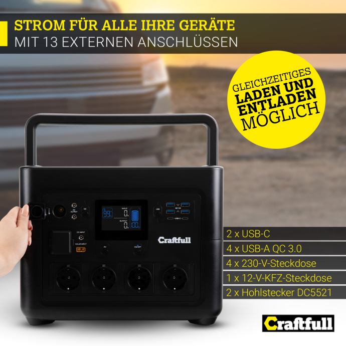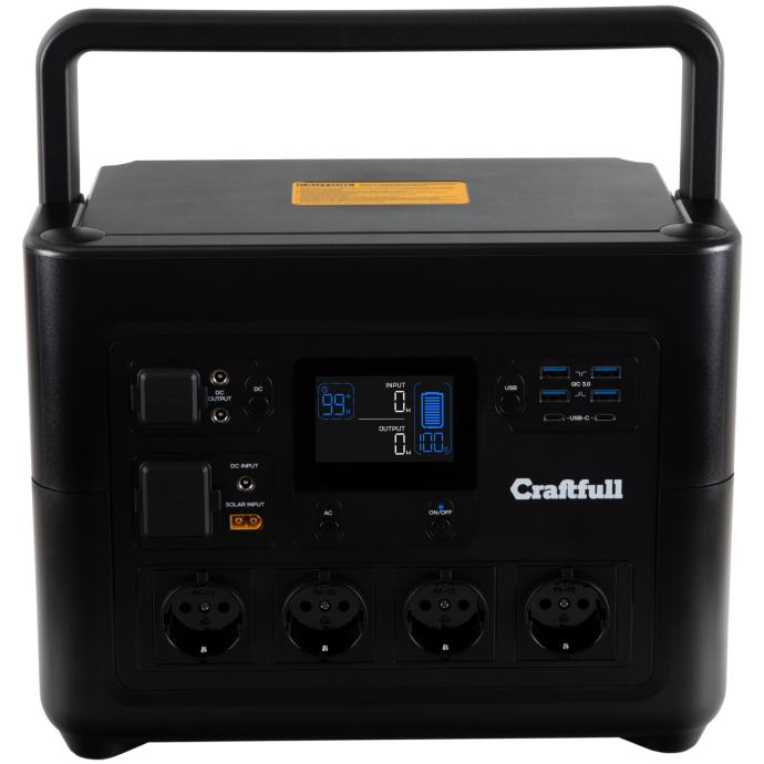 Craftfull Powerstation brzo punjenje PS1800, 1.800 W, prijenosni, litijska baterija, USB, 12 V, 230 V, MPPT