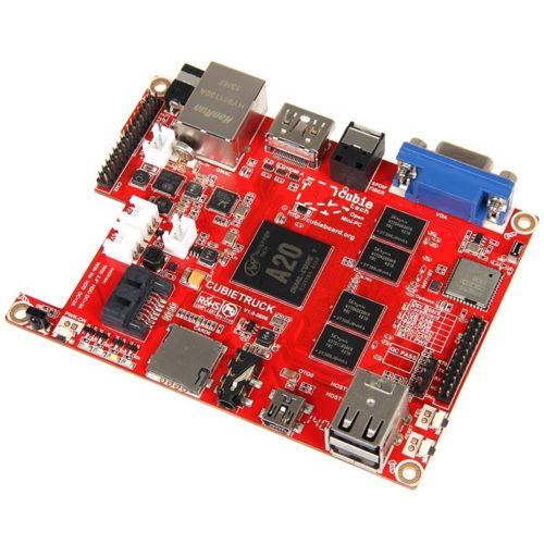 Mikroračunalo CubieTruck koristi procesor Allwinner A20 koji omogućava 2GB memorije, VGA displej, 1000M NIC, WIFI+BT on-board, Li-battery i RTC, SPDIF audio interface.