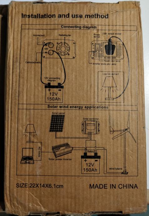 Novi zapakirani solarni konverter sa DC na AC inverter. Sinus je modificirani tako da je dobar za manje potrošače poput televizora, mobitela, laptopa, rasvjete .. nije za frižidere ili perilice...