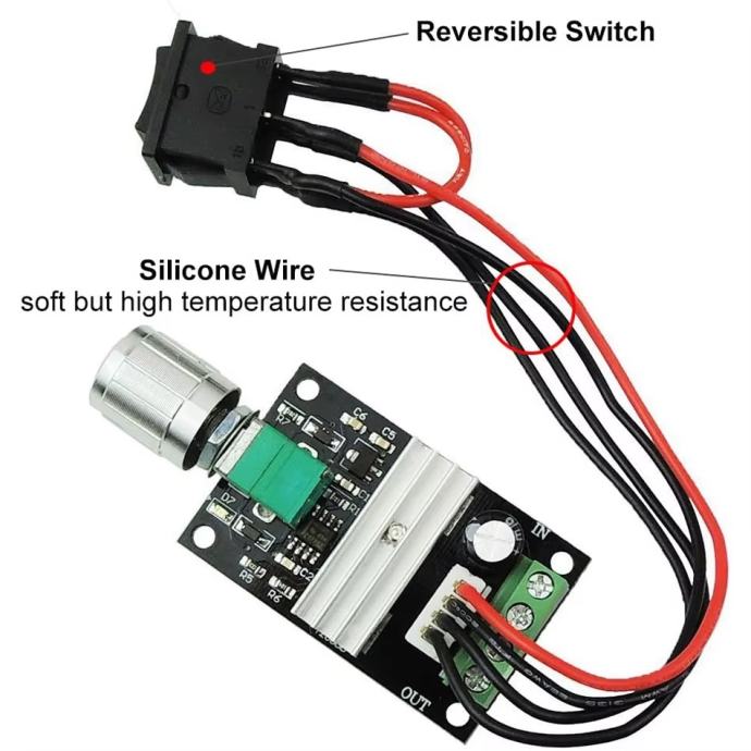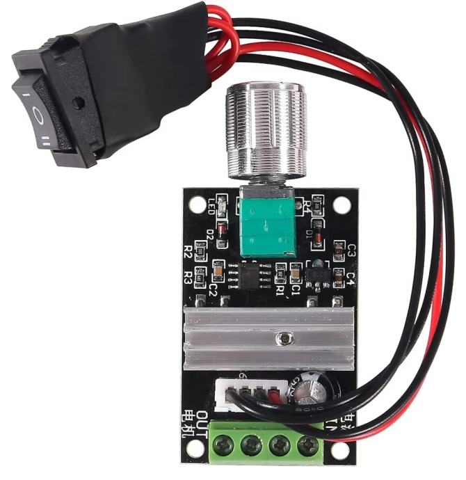 Ovaj regulator upotrebljava se za podešavanje vrtnje motora za napone od 6V do 28V. Potenciometar ima na sebi prekidač napona, a preklopnikom se izavire smjer vrtnje