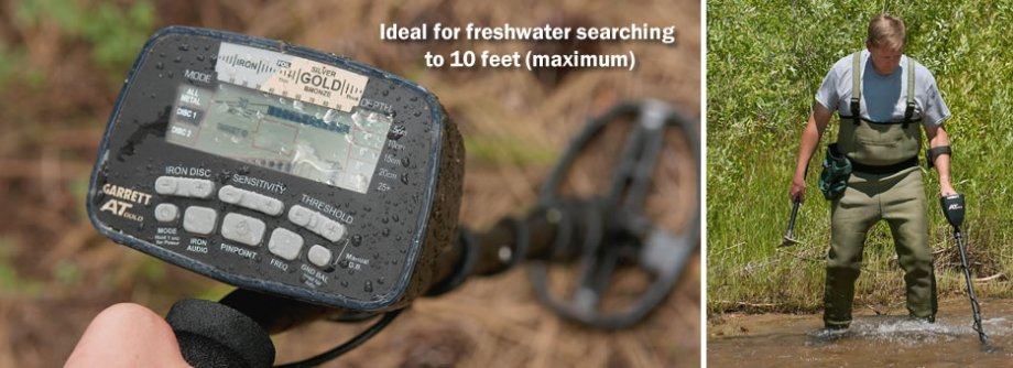 Potpuno vodotjesno kučište i sonda sa svim priključcima omogučavaju traženje u vodi do 3m dubine! Bez poteškoća moći ćete tražiti u prašnoj, blatnoj okolini, u kiši ili pod vodom. Napomena: detektor je zbog svoje visoke osjetljivosti lakše upotrebljavati u slatkoj vodi, za traženje u moru i na mokroj morskoj plaži preporučujemo model AT Pro!