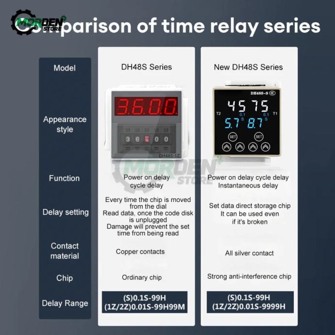 Unaprijeđena modernija verzija originalnog DH48S-S cikličkog timera s podešavanjem umjesto s mehaničkim prekidačima ima kontrolu s tipkalima i prikaz kontrola i protoka vremena na jasno razumljivom preglednom displayu...