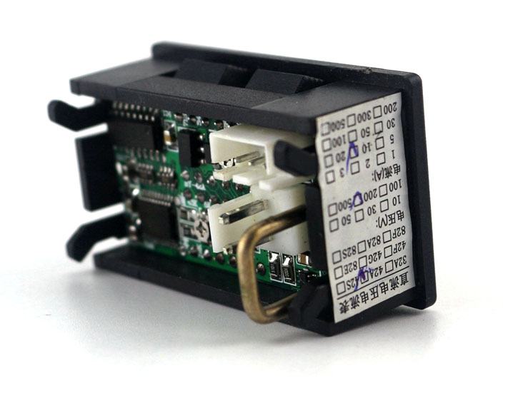 Vrlo precizan digitalni ugradbeni voltmetar i ampermetar sa 4 brojke visine 7mm u dvije boje (napon-crveni, struja-plavi). Način spajanja prikazan na slici 9.