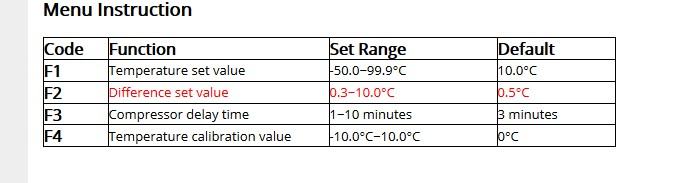 Switch the modes between cool and heat; Control temperature by setting the temperature setting value and the difference value; Temperature calibration; Refrigerating control output delay protection; Alarm when temperature exceeds temperature limit or when sensor error.