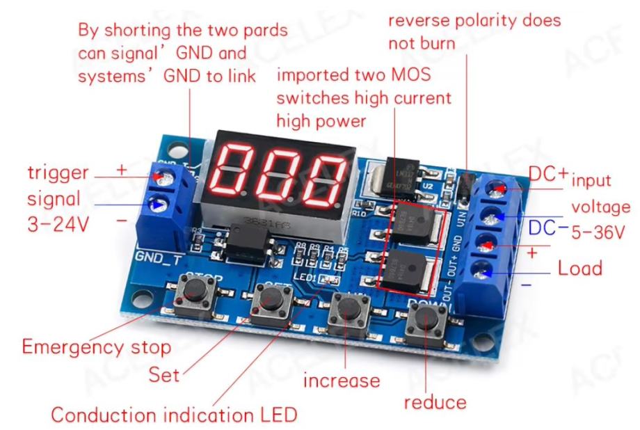 Driver 15A 400W dc5-30V Dual MOS Tajmer 0.1s-999min delay display 3LED