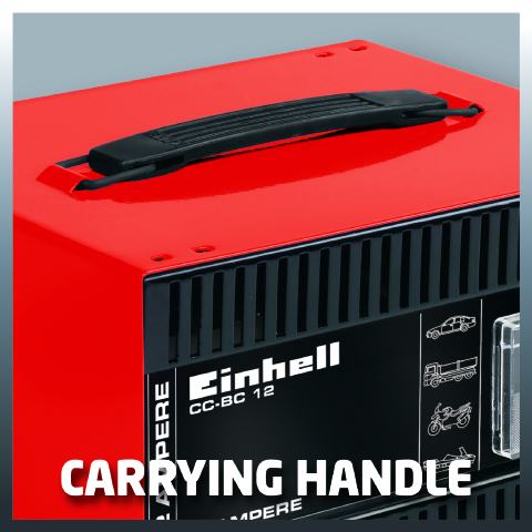 Einhell CC-BC 12 je robusni i praktični punjač akumulatora od 12 V s čelićnim kućištem plastificiranim protiv ogrebotina. Uređaj ima ugrađen ampermetar koji prikazuje razinu struje punjenja. Snažno potpuno izolirano kleme održava odličan kontakt s polovima akumulatora. Punjač akumulatora CC-BC 12 ima i zaštitu protiv pogrešnog spajanja na polove akumulatora i zaštitu protiv opterećenja.