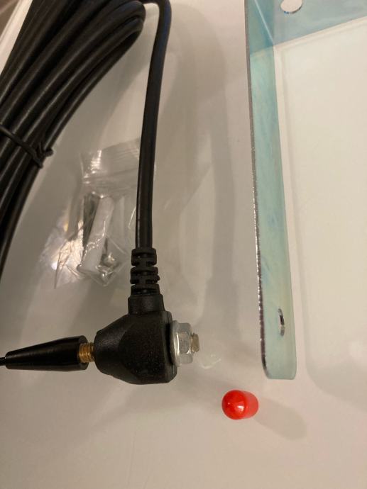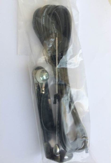 Antena s montažnim inox nosačem (stalkom) i držačem sa zaštitnom gumom kod spoja kao na slikama te s 3,5 m koaksijalnog kabela za prijem frekvencija: 306 MHz, 434 MHz i 868 MHz.
