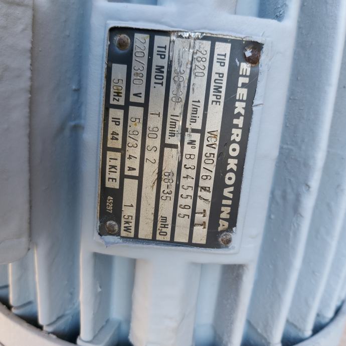 ELEKTROKOVINA T 90 S2 , 1,5 kW , 2820 okr/min, ima mogučnost ugradnje na prirubnicu...prirubnica od rupe do rupe po dijagonali 130 mm, unutarnji fi 110 mm...