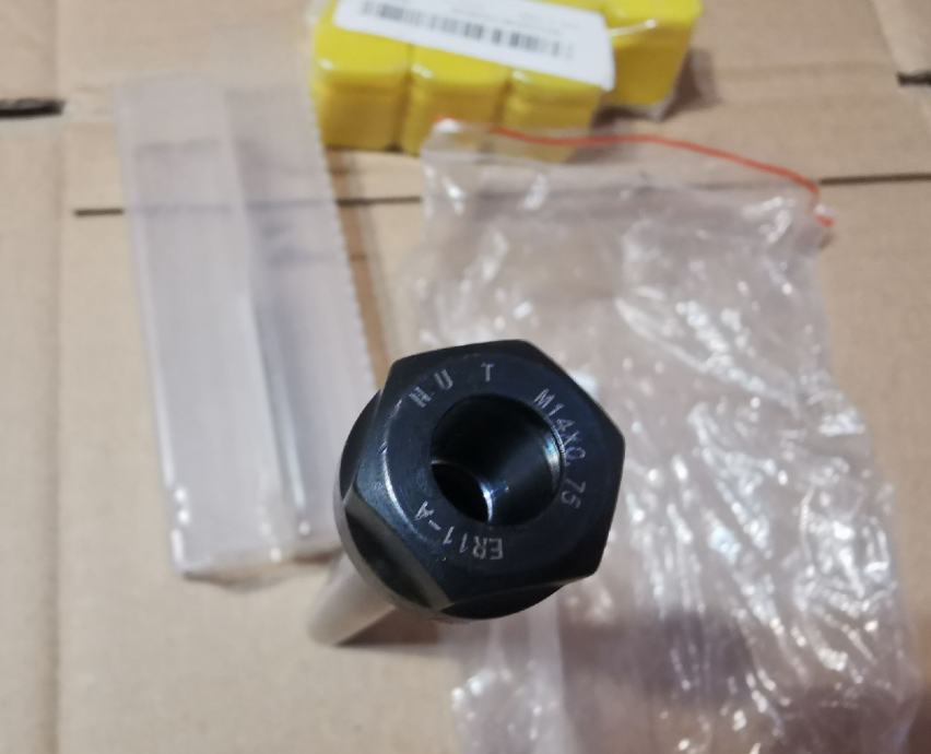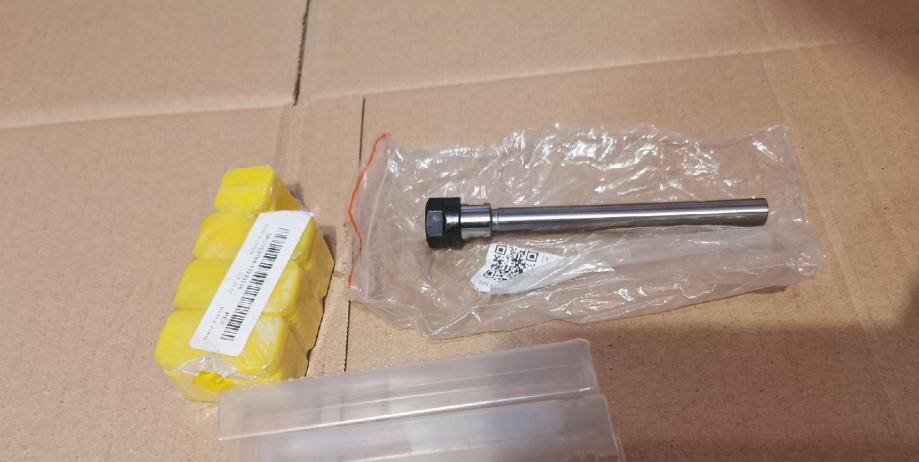 3. Na slikama 7 i 8 nalazi se osovina debljine 10mm sa prihvatom ER11 ukupne dužine 120mm i 7 pripadajućih čahura od 1-7mm, nekorišteno. Prodaje se za 150kn.- PRODANA