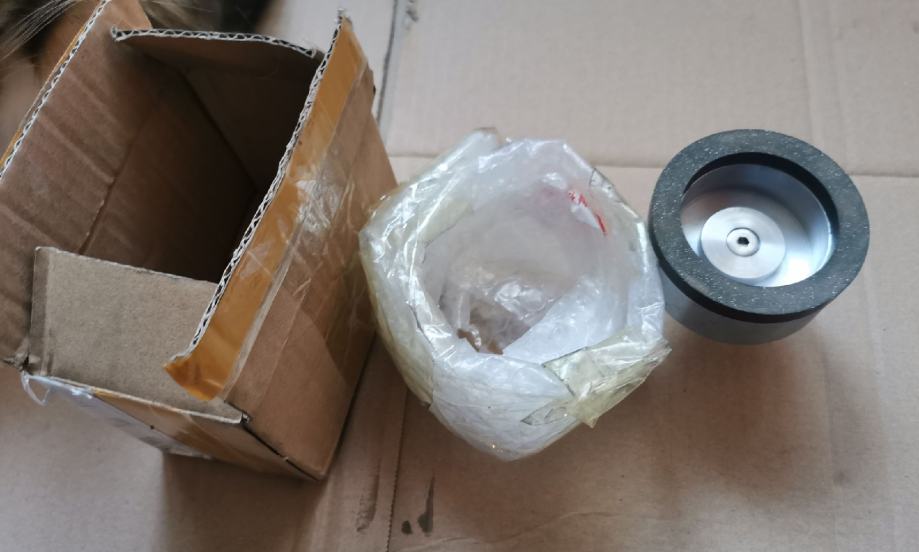 4. Na slikama 9,10 i 11 nalazi se dijamantni brus promjera 75mm, širine nanosa 10mm a debljine 7mm, granulacije 100 zajedno sa prihvatom promjera 13mm. Prodaje se za 250kn.