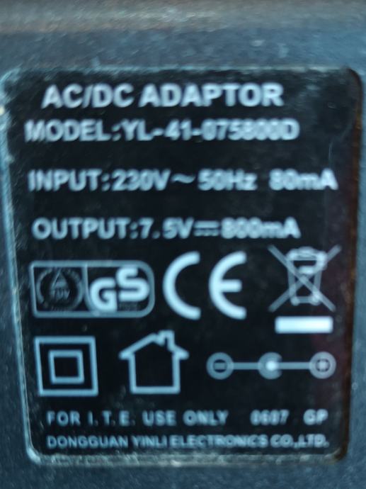 Prodajem ispravan, korišteni električni adapter izlaza 7,5v i 800mA.