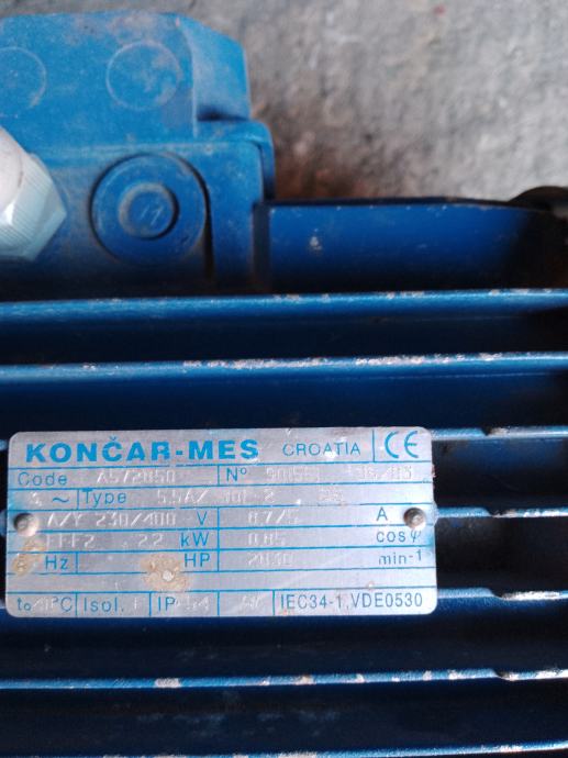 Prodajem elektromotor Končar nekorišten 2.2kw 2800 okretaja
