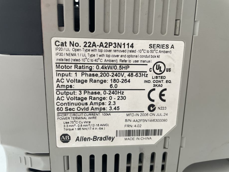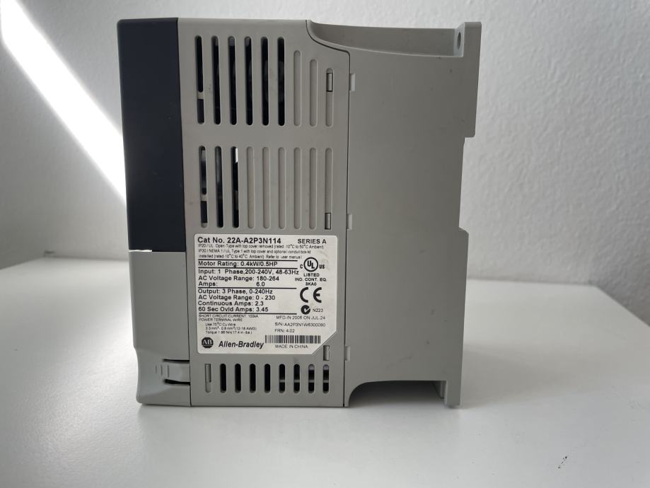Prodajem Allen-Bradley PowerFlex 4 frekventni regulator (model 22A-A2P3N114) namijenjen za preciznu kontrolu brzine AC motora. Uređaj je rabljen, ali potpuno funkcionalan i isprobano radi bez ikakvih problema. Idealan za industrijsku opremu, ventilatore, pumpe, transportne trake i razne automatizacijske sustave.