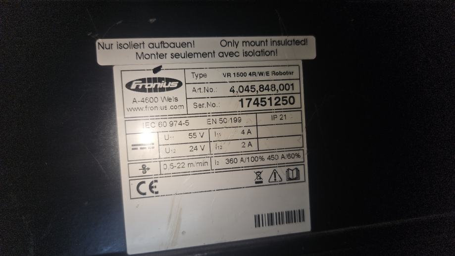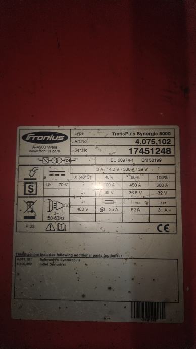Fronius TPS 5000 sa robotskim dodavačem žice VR15000, može se koristiti i kao ručni aparat za zavarivanje, posjeduje sve za spajanje na robota i bure žice od 250 kg, cijena se da korigirati, takođe možete ponuditi cijenu, sve je stvar dogovora, posjedujem račun od firme od koje sam kupio.