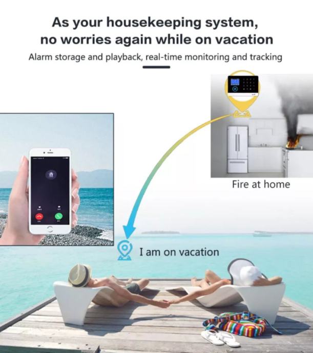 FULL Pametni Smart Alarmni sistem koji ukljucuje bazni panel kontroler (internet most) + detektore pokreta, senzore za vrata rfid senzore za privjesak i daljinske. Panel je FULL BEŽIČNI radi putem WIFI ili mobilne mreže (SIM KARTICA) ili oboje za maksimalnu sigurnost u slučaju nestanka wifi mreže (prekida struje u vašoj kući). Panel dobija napon iz struje ili baterije u slučaju nestanka struje. U svakom momentu imate punu sigurnost u všem domu. Aktivacijom nekih od senzora vi dobijate na vaš mobilni uređaj OBAVIJEST PUTEM APLIKACIJE.