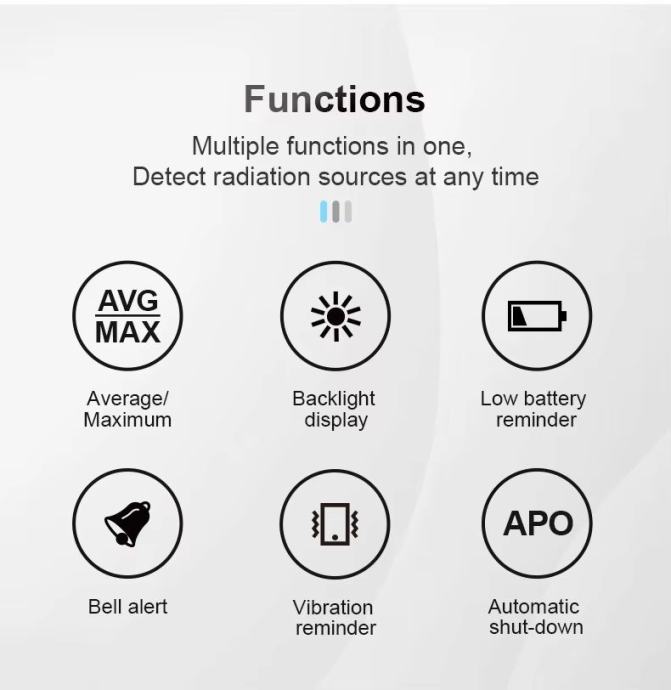 Dosage unit: μSv/h,μGy/h,mR/h,cps,cpm Switch