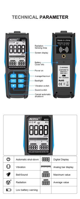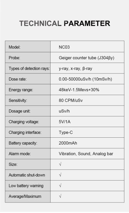 Dose equivalent rate: 0.00-1000uSv/h (10mSv/h)