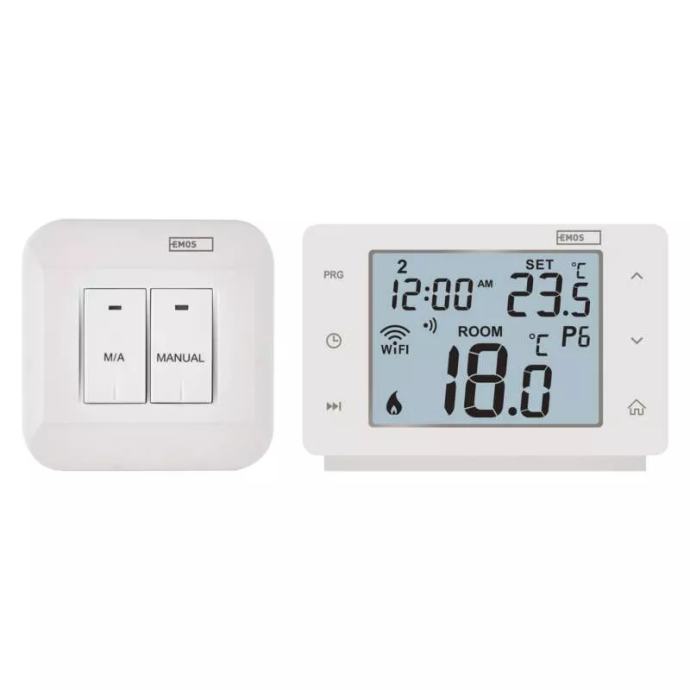 Termostat P56211 pripada liniji proizvoda EMOS GoSmart . Njime se može upravljati putem besplatne mobilne aplikacije EMOS GoSmart koja je kompatibilna s operativnim sustavom Android i iOS . Jednostavno ga spojite na svoju Wi-Fi mrežu i upravljate cjelokupnim radom termostata putem mobilne aplikacije. Jedna od prednosti termostata je njegova kompatibilnost s Google Assistantom i Amazon Alexom . Ovo također omogućuje glasovnu kontrolu .