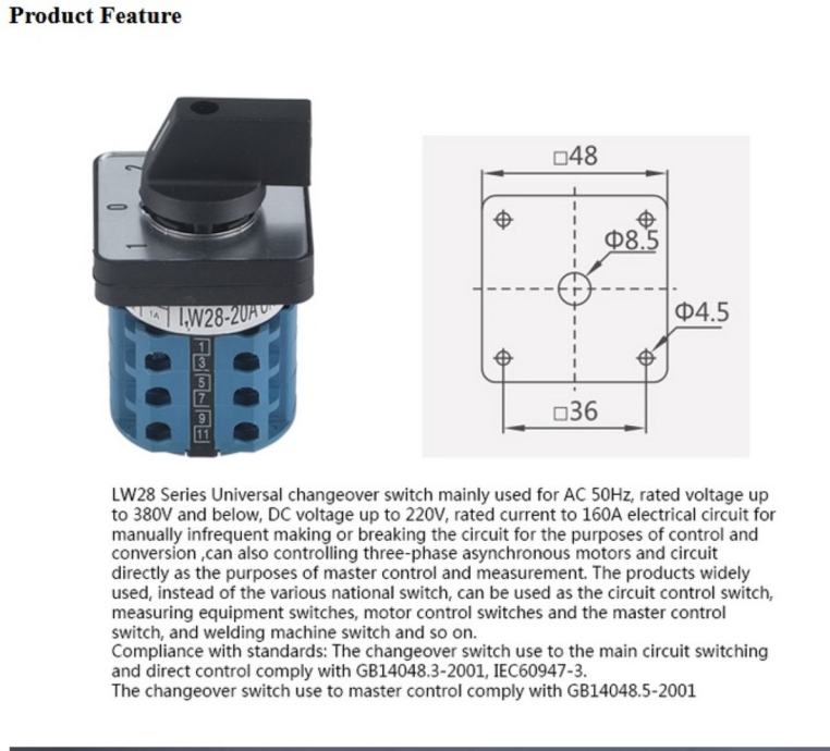 Grebenasta sklopka LW28-20 LW28-20 1-0-2 20A tropolna 12 priključaka