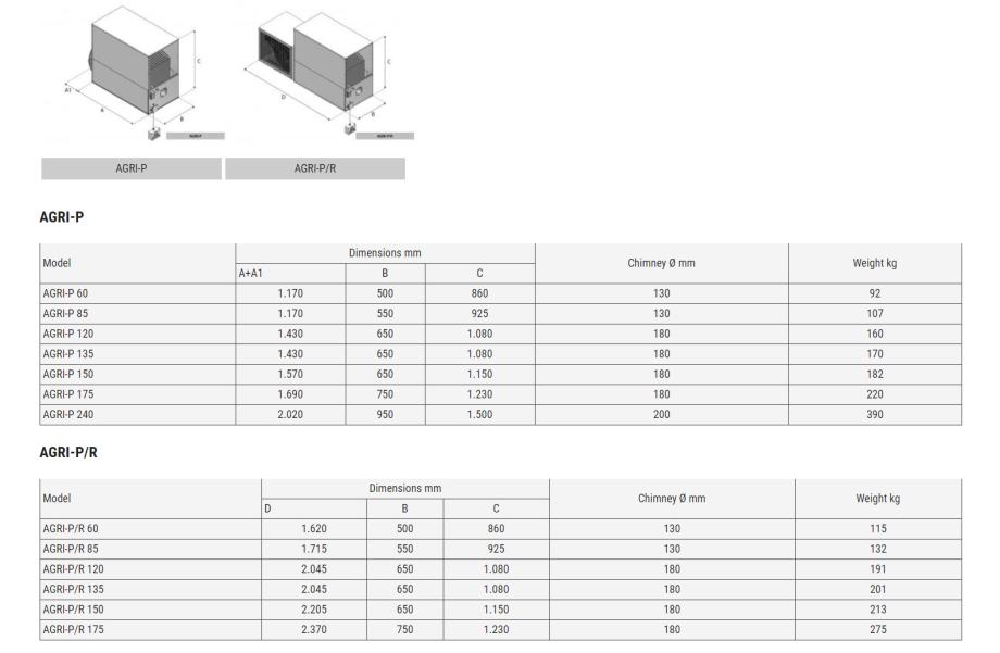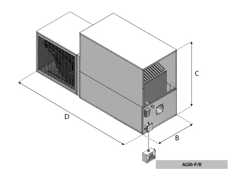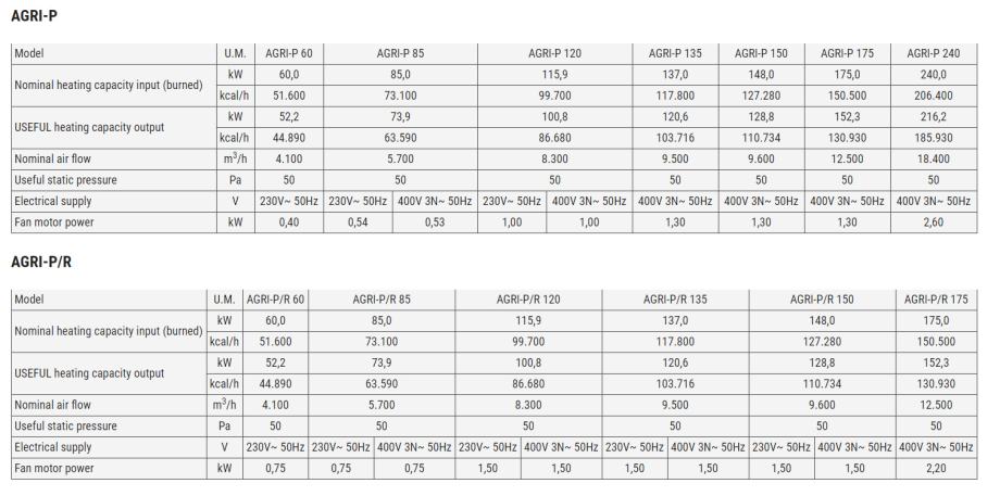 Grijači su dostupni s moćnim aksijalnim ili centrifugalnim ventilatorima u izvedbama AGRI-P / R koji udovoljavaju različitim zahtjevima sustava. Jedinica je opremljena kontrolnim i sigurnosnim termostatima. Ormar je izrađen od pocinčanih prethodno obojenih čeličnih ploča.