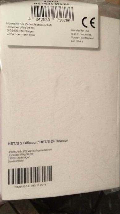 Prodajem novi orginalno zapakirani Hörmann 2-kanalni prijemnik oznake HET/S 24 868 MHz BiSecur (BS) s knjižicom i uputama na HR jeziku.