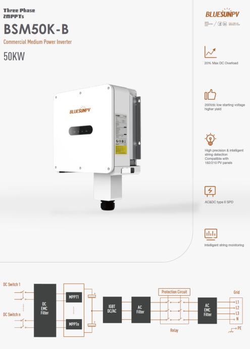 Prodaje se novi i nikad korišteni inverter snage 50kW, model BSM50K-B proizvođača Bluesun.