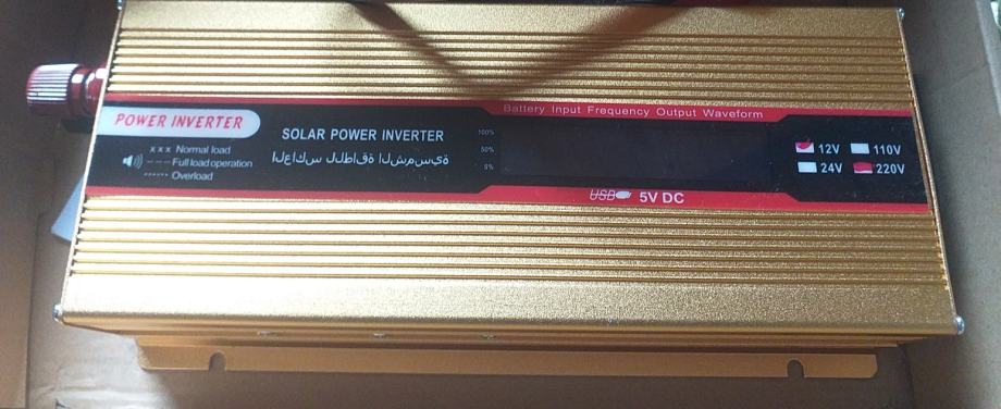 Ovaj uređaj od 12V DC naponom (pogodno za akumulator, kamion ili drugi solarni sustav), stvara 230V AC, a to mogu biti kontrolirani s kućanskim aparatima pri naponu od 230V.