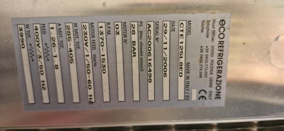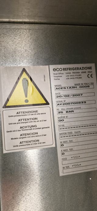 Isparivac veliki 3 ventilatora ECO REFRIGERAZIONE / madw in UDINE ITALY + zracni kondenzator sa širokim lamelama talijanski original za minus režim komore cca 40m3 -novo - made in Italy (specifikacije na plocicama) NOVO