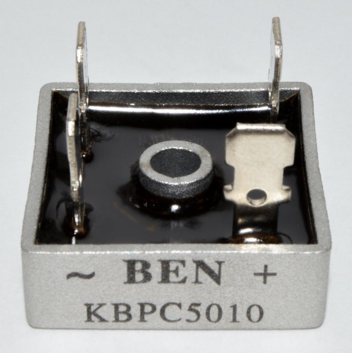 Model je KBPC5010 jeftino rješenje za popravak ili samogradnju raznih vrsta napajanja za: punjače akumulatora, aparata za varenje, ispravljače audio pojačala itd.