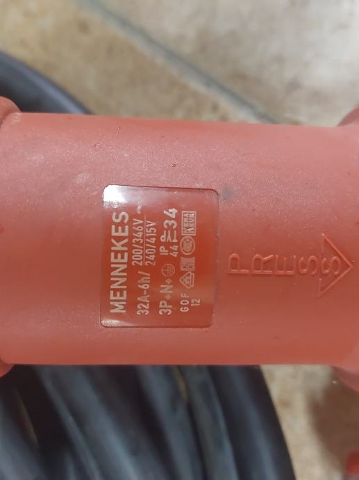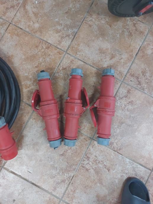 Trofazni kabl za struju sa musko-zenskim uticnicama 20 metara i posebno 6 kom. musko-zenskih uticnica