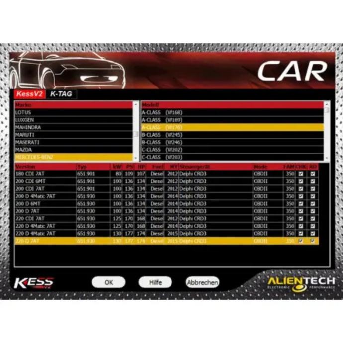 Kess firmware V5.017 pokriva sve glavne marke i protokole uključujući Line, KAN, EDC17, MED17 i Ford J1850.