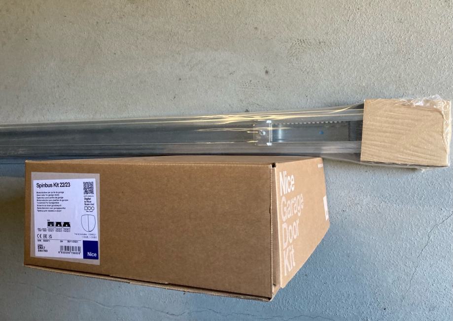 Prodajem NOVI zapakirani stropni motor za garažna vrata Nice Spinbus (s garancijom 24 mjeseca od ugradnje) s vodilicom (prijenos PVC armirani remen - bešumno) duljine 3 m.