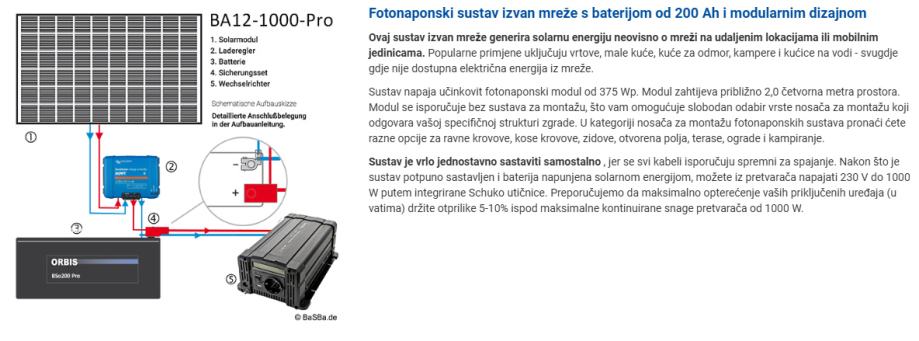 Fotonaponski sustav izvan mreže s baterijom od 200 Ah i modularnim dizajnom