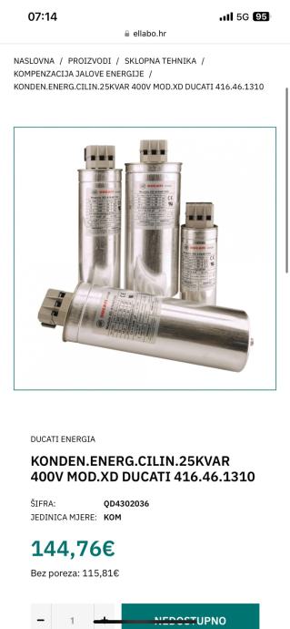 Prodajem navedeni kondezator trofazni za kompezaciju jalove struje.