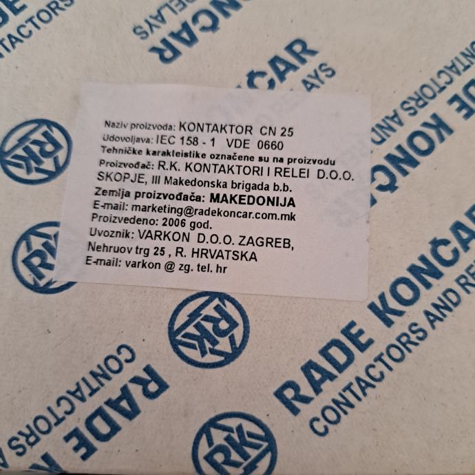 Kontaktor (sklopnik) Rade Končar CN 25 22, 220 V, ostali podaci na etiketi na fotografiji.