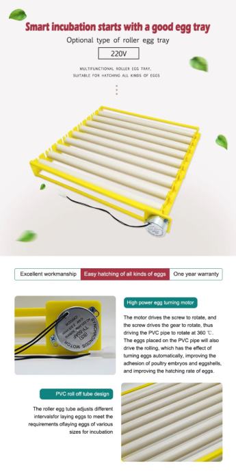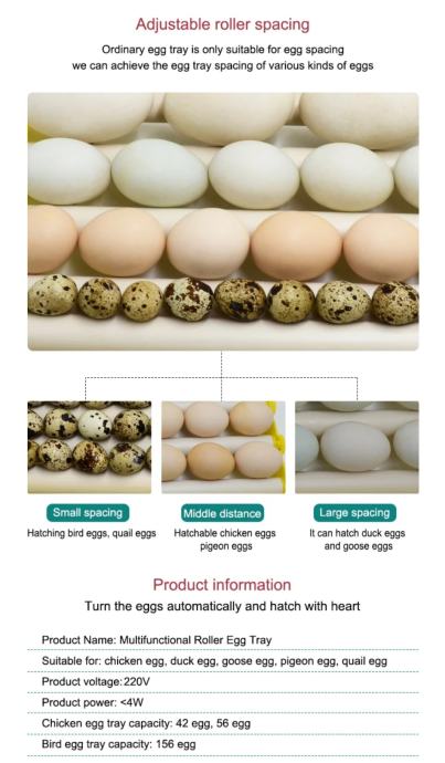 Praktična i jednostavna ladica za automatsko okretanje 42 kokošja ili do 72 sitnija jaja dimenzije ladice su 44x44x6cm (43x43x6cm). Dolazi s ugrađenim motorom na 220V....