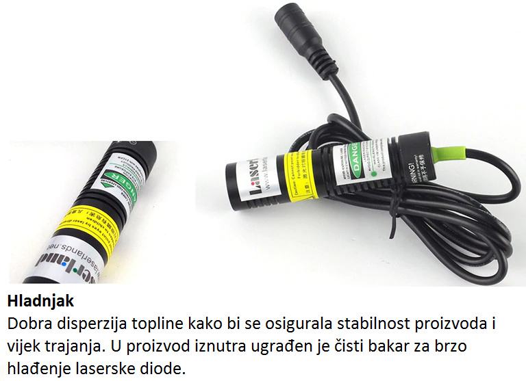 VAŽNO - Vrijeme upotrebe rada : 3 sata uključeno, 5 minuta isključeno radi hlađenja laser