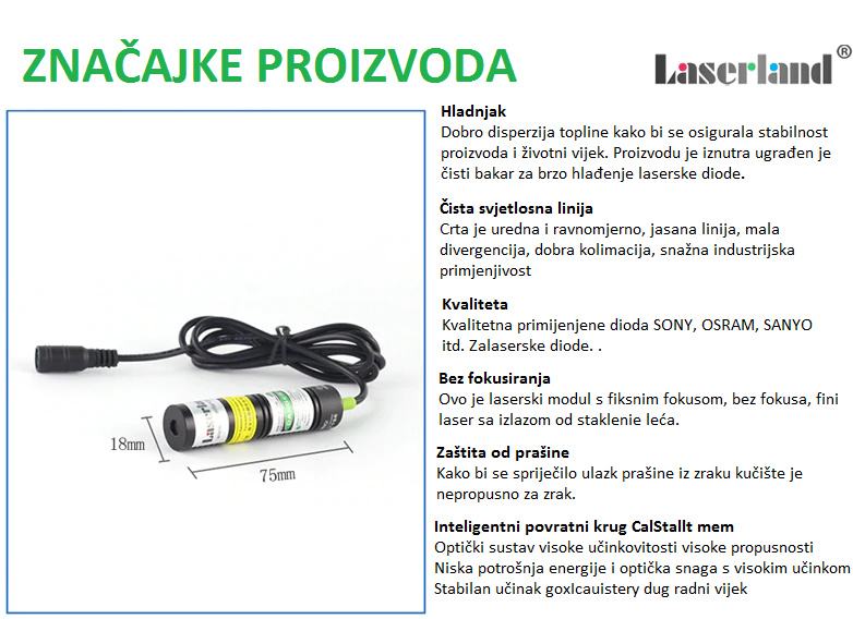 532nM 10mW linijski laser zeleni bez fokusa, sa adapterom, za rezanje drveta, tkanina, kamena i drugih proizvoda koje treba označiti za vidljivi pravac rezanja. Pogodno za rezaće, razne pilane, gradilište, poravnanje, linijsko lociranje.