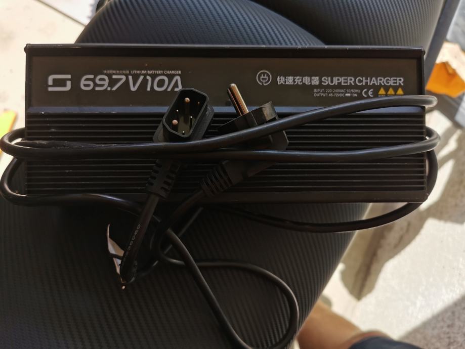 Punjač za litij baterije, 46-72VDC 10A. Kao novi. Konektori vidljivi na slici.