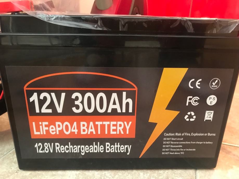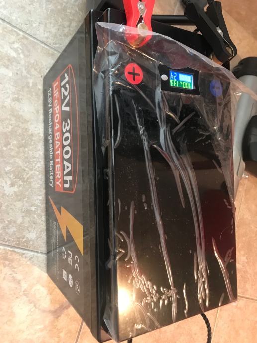 Nova LIfePo4 baterija, formiran prvi ciklus. Kapacitet baterije je 12V x 300Ah = 3.600Wh ili 3,6KWh. BMS je integriran u kucistu sa clancima baterije.